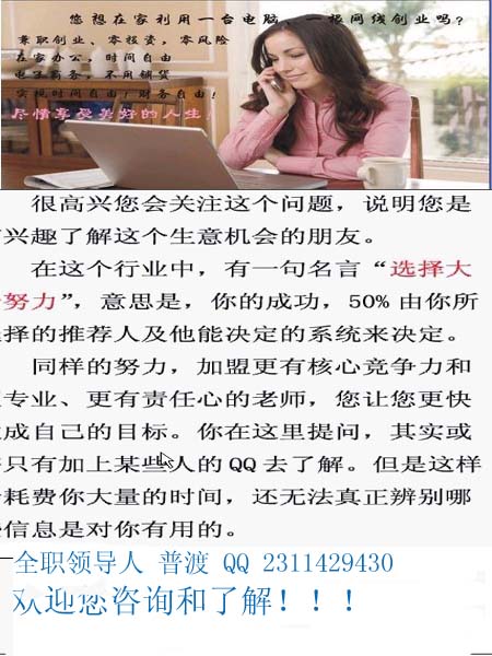 恒信國際普渡老師QQ:2311429430,科士威恒信國際團(tuán)隊(duì)事業(yè)領(lǐng)導(dǎo)人,科士威加盟咨詢的第一選擇!為您詳細(xì)介紹科士威??!一臺(tái)電腦、一根網(wǎng)線、一杯咖啡...談笑間輕松成交全球生意!不出差、不囤貨、不電話邀約...盡顯做網(wǎng)商的高貴和優(yōu)雅!機(jī)遇常常在懷疑中錯(cuò)過,猶豫中喪失。在互聯(lián)網(wǎng)時(shí)代唯一的風(fēng)險(xiǎn)就是觀望!你不相信并不代表不發(fā)生,你不參與并不打拼一年月薪過萬,努力兩年周薪過萬,奮斗三年日薪過萬!尋找敢于