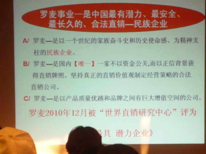 2012直銷業(yè)殺出的一匹黑馬--北京羅麥一、北京羅麥科技有限公司是做什么的?北京羅麥科技有限公司成立于2001年,是一家集科研開發(fā)、生產(chǎn)、銷售于一體的高科技企業(yè)。2007年10月26日獲得國家商務(wù)部直銷牌照,是一家背景實(shí)力雄厚的直銷企業(yè)。2011年1月1日正式起運(yùn)新制度,是一種把“互聯(lián)網(wǎng)連鎖店人際網(wǎng)”天網(wǎng)和地網(wǎng)結(jié)合在一起的一種全新的營銷模式。把健康傳遞給千家萬戶,讓天下人輕松愉快的賺錢,使家庭和諧