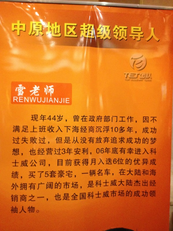 我和小學(xué)生老師的合影我為什么叫他小學(xué)生老師呢?因?yàn)樗挥行W(xué)文憑。并且小學(xué)畢業(yè)的時候,語文和數(shù)學(xué)兩門課加起來分?jǐn)?shù)只有60分,當(dāng)他哥哥叫他做電子商務(wù)的時候,他說:“大哥,我連電腦開關(guān)在哪里都不知道,你讓我做電子商務(wù)......“就是這樣的情況,12年9月份和團(tuán)隊(duì)一起去馬來西亞考察,11月份,月收入已經(jīng)是七千多了,12月份突破萬元大關(guān)。這個女孩子這么矮,卻有著大大的力量,一年前的她可不是這樣子,看她以