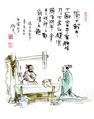 “養(yǎng)生”一詞最早出現(xiàn)在我國的兩本古籍上,一處見于《莊子·養(yǎng)生主》中的“庖丁解?!币晃?,另一處見于《黃帝內(nèi)經(jīng)·靈樞》中的“木神”?!扳叶〗馀!钡墓适?,我們在中學的語文課本上都學過,它出現(xiàn)在我國著名思想家莊子的《養(yǎng)生主》這篇文章中?!娥B(yǎng)生主》是一篇專門談養(yǎng)生之道的文章,“養(yǎng)生主”的意思就是養(yǎng)生的要領。莊子認為:養(yǎng)生之道重在順應自然,忘卻情感,不為外物所滯。我先給大家簡單介紹一下“庖丁”是什么意思?!扳?a href="http://m.kmaudio.cn/blog/html/9637.html" target="_blank" >