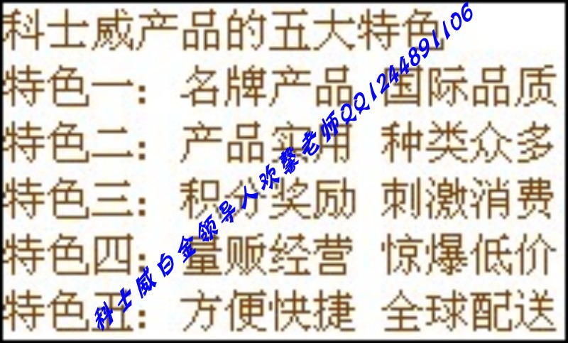 蘇州科士威加盟咨詢的第一選擇!蘇州科士威王者眾贏團隊事業(yè)領(lǐng)導(dǎo)人王者歡馨老師QQ:1244891106電話:15158599803蘇州科士威特惠屋產(chǎn)品加盟中心科士威恒信王者眾贏團隊海內(nèi)外精英加盟中心科士威如何會成為適合普通大眾的事業(yè)呢?首先,科士威產(chǎn)品是大家日常生活都需要用到的物品,并且科士威產(chǎn)品齊全,價格便宜,是廣大的消費者都能買得起的產(chǎn)品。其次,當(dāng)您經(jīng)營科士威事業(yè)時,只需把您日常生活中需要用到的