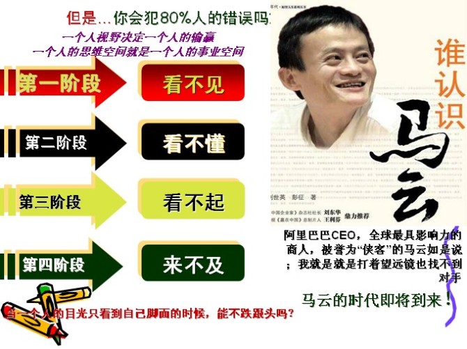 1.直銷是幫助你快速致富與成功,而不是幫助你不勞而獲。你同意“只要加入直銷事業(yè),就能輕輕松松、不費(fèi)吹灰之力地成功致富”這個(gè)觀念嗎?如果你不同意,恭喜你,你的直銷觀念很正確,如果你同意,那么就要注意了,因?yàn)槟憧赡鼙荒承榱思彼贁U(kuò)展組織的人誤導(dǎo),而將直銷事業(yè)神化與脫離現(xiàn)實(shí)。直銷之所以能幫助人們快速成功致富,就在于它讓人們將原來(lái)十年要做的事情、要付出的心血、要接觸的人集中在兩年到三年的時(shí)間完成。因此,在