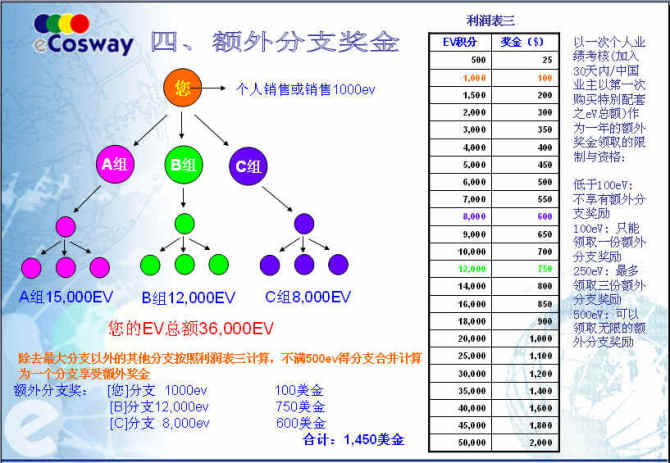 其初期做法是,會(huì)員在加盟商購(gòu)物1萬(wàn)元,向誼生公司支付1600元,誼生公司以每日20元返利給會(huì)員,共計(jì)返利500日。隨著會(huì)員人數(shù)越來(lái)越多,后來(lái)轉(zhuǎn)為直接向誼生公司支付1600元錢就可獲得每日20元返利的方式,而誼生公司還是從會(huì)員每日20元返利中收取5%手續(xù)費(fèi)。 21世紀(jì)要么電子商務(wù)要么無(wú)商可務(wù)
