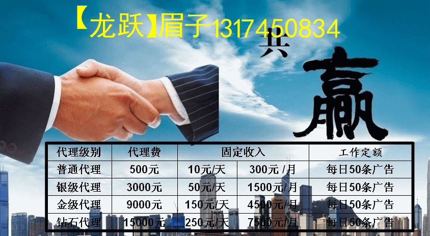 普通代理 500元 10元/天 300元 /月 每日50條廣告