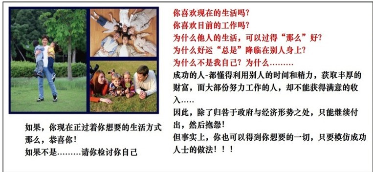 有些人的一生,100%靠自己的努力賺取收入,實在很令人贊嘆。當您想到這里,幾乎生活中每件事都要靠分工合作。您住的房子不是自己蓋的,車子不是自己設計的,連您在用的這部計算機也不是自己組的。您利用別人的才智和努力來打造生活。現(xiàn)在起,您可以不必這么辛苦,您可以用聰明的方法工作。我們會告訴您如何將這個模式套用在您身上!有了和贏系統(tǒng),您可以自己當老板!