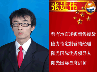 張進偉,河南人,計算機畢業(yè)!隆力奇全球定制營銷經(jīng)理,隆力奇陽光國際系統(tǒng)金牌班主任,隆力奇陽光國際優(yōu)秀領(lǐng)導人。曾經(jīng)在國企上班,從事過地面商務商會運作,有過豐富的直銷經(jīng)驗,懷著一份不平凡的心,于2012年5月通過互聯(lián)網(wǎng)接觸了隆力奇電子商務事業(yè),加盟陽光網(wǎng)商國際系統(tǒng),通過自身能力,迅速開避市場,組建一支最具有競爭力的營銷團隊,并堅信帶領(lǐng)自己傘下更多的伙伴走向成功。我的人生格言是:不相信奇跡的人永遠不會創(chuàng)造奇跡。心有多大,舞臺就有多大!
