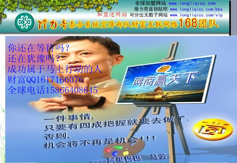 作者:馬風(fēng)英 聯(lián)系方式QQ:1617166076電話:15866408645 .隆力奇直銷創(chuàng)業(yè)導(dǎo)師,資深顧問,網(wǎng)商教練!隆力奇直銷空降部隊(duì)168國際團(tuán)隊(duì)創(chuàng)始人、資深直銷實(shí)戰(zhàn)專家,高級(jí)培訓(xùn)導(dǎo)師。擅長于直銷團(tuán)隊(duì)建立、人才培養(yǎng)與系統(tǒng)打造。尋找敢于挑戰(zhàn)高薪的住家創(chuàng)業(yè)精英!我們一起全力以赴,我來手把手教會(huì)你互聯(lián)網(wǎng)輕松創(chuàng)業(yè)做網(wǎng)商!