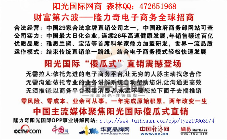 隆力奇陽(yáng)光國(guó)際電子商務(wù)招商部: