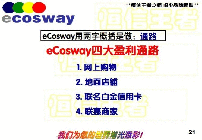 產(chǎn)品特色是擁有來自全球20多個(gè)國(guó)家的頂級(jí)優(yōu)質(zhì)日用品,消費(fèi)就能順便加盟了,既沒有經(jīng)濟(jì)風(fēng)險(xiǎn)也沒有道德風(fēng)險(xiǎn)就能輕松獲得機(jī)會(huì),只需要有家庭日常開支換個(gè)超市消費(fèi),就可以變消費(fèi)為收入了!無任何的業(yè)績(jī)壓力!絕對(duì)消費(fèi)自由!有專業(yè)的團(tuán)隊(duì)和老師持續(xù)提供免費(fèi)培訓(xùn)和運(yùn)作協(xié)助!