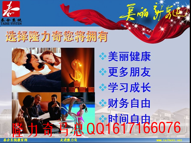 在這里我不能不告訴朋友,隆力奇電子商務(wù)項目,是將直銷無限倍增的市場優(yōu)勢與互聯(lián)網(wǎng)無限的人脈優(yōu)勢相結(jié)合的先機事業(yè),也是兩大趨勢的完美結(jié)合。我深信,在當(dāng)前社會環(huán)境下,多數(shù)朋友都希望對自己有個好的改變。然而,我們都懂的,改變需要諸多的條件,而其中首要的是改變我們的觀念。只有觀念超前了,我們才能期待有睿智的眼光,認(rèn)清當(dāng)前和今后的一個“勢”。