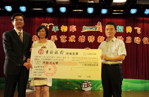 安利大中華總裁顏志榮及夫人向新疆自治區(qū)團(tuán)委贈(zèng)送“安利愛(ài)心巧手藝術(shù)坊”30萬(wàn)元。