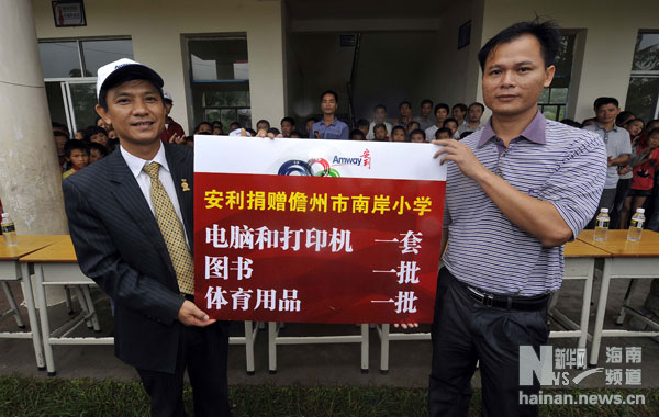 26日,安利海南分公司的志愿者在儋州市新洲鎮(zhèn)南岸村南岸小學(xué)開展節(jié)前助學(xué)送溫暖活動(dòng),為南岸小學(xué)的300多名學(xué)生送去了電腦、圖書、體育用品等學(xué)習(xí)用具,并和學(xué)生們一起唱紅歌、做游戲。