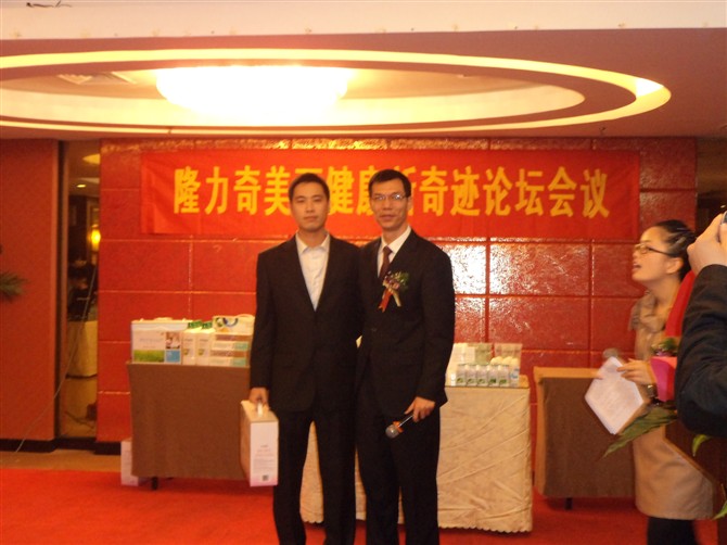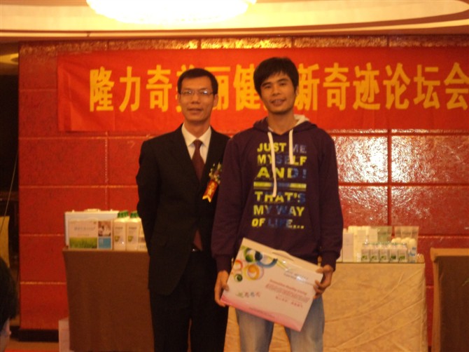 隆力奇福建分公司總經(jīng)理何民先生分別與兩位現(xiàn)場(chǎng)報(bào)單VIP會(huì)員合影