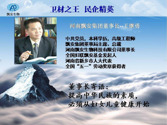 公司占地面積36萬平方米,注冊資金2億元,職工5100余人,其中碩士25人,大中專以上工程技術(shù)人員1680人。集團公司下設(shè)河南飄安高科股份有限公司、新鄉(xiāng)市非織布衛(wèi)材有限責(zé)任公司、新鄉(xiāng)市無紡布有限責(zé)任公司、新鄉(xiāng)市消毒有限責(zé)任公司、長垣縣醫(yī)用衛(wèi)材有限責(zé)任公司5個控股子公司 ,并設(shè)立了一個飄安集團與美國恒保的合資公司。集團主導(dǎo)產(chǎn)品脫脂紗布、脫脂棉、一次性無紡制品、醫(yī)療器械設(shè)備、生物材料制品、醫(yī)用高分子共6大板塊50多個系列500多個品種,產(chǎn)品國內(nèi)市場占有率48%以上,且已出口到歐美等國家。