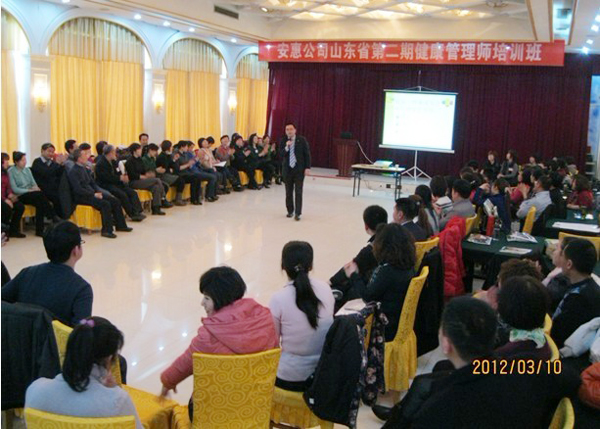 安惠濟南分公司組織山東及周邊地區(qū)90多名優(yōu)秀經銷商在濟南舉辦健康管理師培訓班。