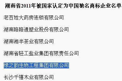 綠之韻商標(biāo)受湖南省政府通報(bào)表彰