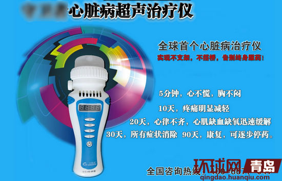 宮女士對環(huán)球網(wǎng)青島頻道記者說, 10月22日她被確診為心臟病。10月23日,翻閱報紙時看到某超聲波治療儀的大篇幅廣告,該治療儀聲稱“不求醫(yī)院,不服藥,在家治好心臟病?!彪m然該儀器的售價高達(dá)1600余元,但宮女士看到治療儀宣稱的“4到10天接觸心絞痛,60到120天徹底康復(fù)”還是決定暫暖住院,寄希望于該治療儀。當(dāng)天,宮女士的丈夫根據(jù)報紙上刊登的地址,在青島同仁堂威海路店買了一臺。