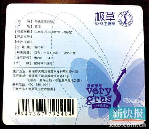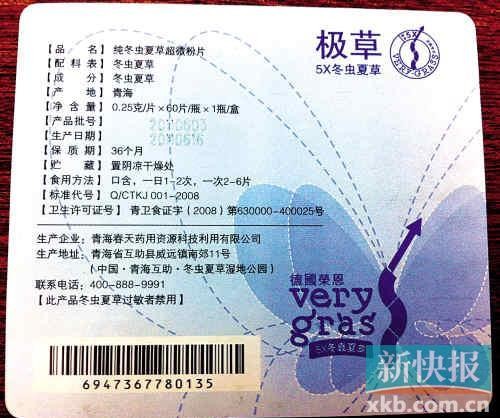 盡管因國(guó)家明令“禁止冬蟲(chóng)夏草作為食品原料生產(chǎn)普通食品”,所以“極草5X”系列目前“大變臉”,把原來(lái)的許可證號(hào)“青衛(wèi)食證字(2008)第630000-400025號(hào)”變成了“青20100041”,但記者走訪其廣州多家專(zhuān)賣(mài)店發(fā)現(xiàn),該公司還是堂而皇之地把新舊兩個(gè)證號(hào)的產(chǎn)品放在一起賣(mài),涉嫌違反國(guó)家規(guī)定。此外,對(duì)于極草冬蟲(chóng)夏草純粉片系列產(chǎn)品,其銷(xiāo)售人員又給出了一種“中藥飲片”的身份,然而卻極力否認(rèn)屬于藥品。對(duì)于極草產(chǎn)品性質(zhì),充斥著種種模棱兩可的說(shuō)法,不得不讓人產(chǎn)生眾多疑慮。