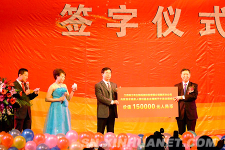 簽字儀式上,隆力奇陜西分公司為省殘聯(lián)捐贈精致生活子午流注理療儀10臺總價值15萬元人民幣。陜西省殘疾人福利基金會秘書長李朝慶向隆力奇贈送了匾額和證書,并對隆力奇此次善舉給予了充分肯定和贊揚。