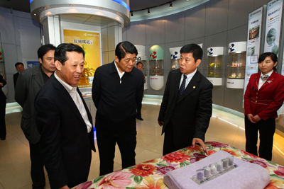 劉俊文主席等領(lǐng)導(dǎo)一行首先在集團(tuán)總裁陳玉琦、常務(wù)副總裁潘曉非等公司領(lǐng)導(dǎo)的陪同下參觀了珍奧科技館,特別是了解到不久前又有6位諾貝爾獎科學(xué)家來到珍奧生命園交流探討前沿科學(xué),并指導(dǎo)科研工作后,對珍奧幾年來的快速發(fā)展給予了充分肯定。