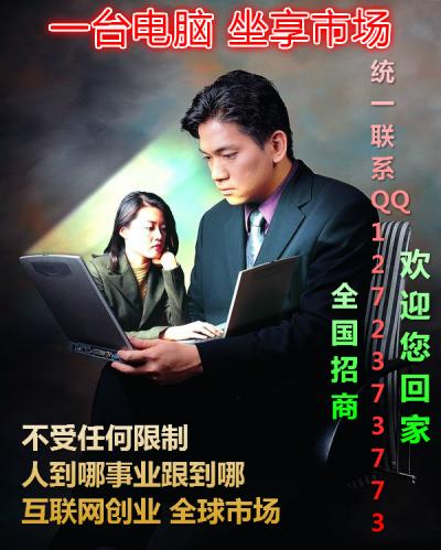 互聯(lián)網(wǎng)直銷使普通人由平凡而璀璨,由約束而自由,由卑微而顯貴。今天有些人還沒有來得及從這個直銷的噩夢中驚醒,而新的一場革命像海嘯一樣又鋪天蓋地而來!機會,是留給懂得把握的人;成功,是留給懂得付出的人;財富,是留給懂得追求的人!機會,人的一生中不會有幾次,許多人都為與機會擦肩而過而后悔,請不要再丟掉這次機會。網(wǎng)商系統(tǒng)核心領(lǐng)導(dǎo)人業(yè)務(wù)QQ:1272373773招商熱線:13751105689做對趨勢,把握[詳細(xì)]